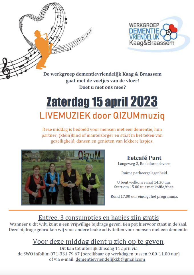 Zaterdag 15 april 2023 LIVEMUZIEK door QIZUMmuziq